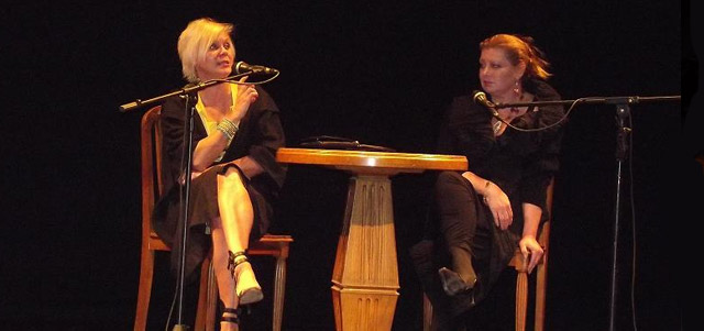 Встреча со зрителями. Слева - исполнительница главной роли в фильме «Кококо» Яна Троянова, справа - актриса театра «Гешер» Наталия Манор.
