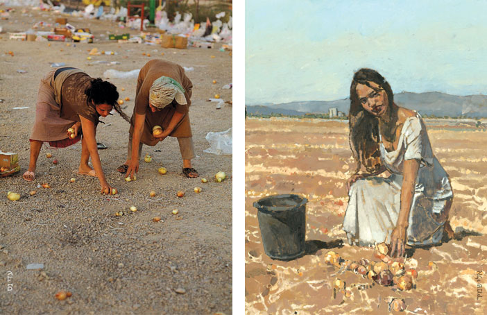 В его работах земля – один из центральных образов. Эта земля суха и скудна, и тяжела в обработке. У его персонажей жилистые тяжелые руки, их быт скуден и строг, их распорядок жизни подчинен сельскохозяйственным циклам, временам года и часам света и темноты. Если попытаться найти литературную параллель, то работы Эли Шамира в наибольшей степени перекликаются с произведениями Меира Шалева, в центре внимания которого земля Эрец-Исраэль и люди, живущие на этой земле.