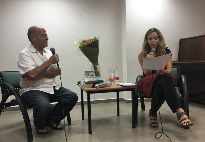 На встрече с читателями в Русской библиотеке Иерусалима. Анна Дубровицкая читает отрывок из романа Меира Шалева в переводе Рафаила Нудельмана и Аллы Фурман