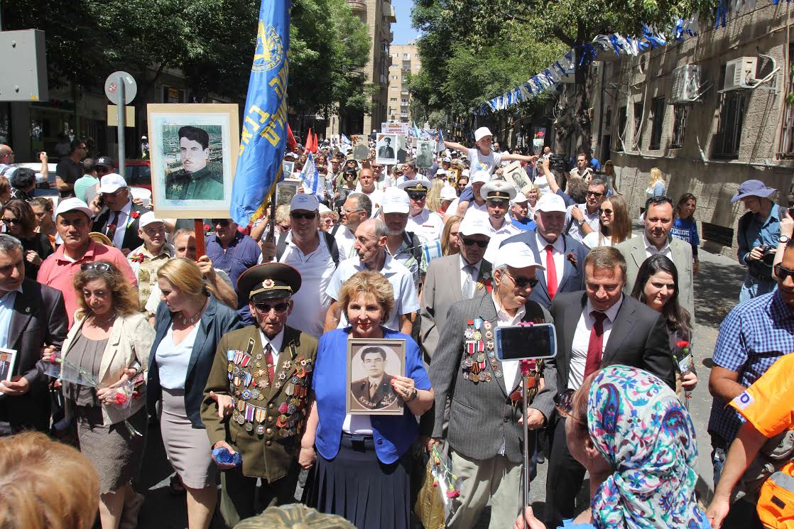 Ещё 14 лет назад первые участники парада начали нести в руках портреты и медали своих родных и близких – не только ветеранов, но и тех, кто были уничтожены во время Второй мировой войны только за то, что они были евреями.