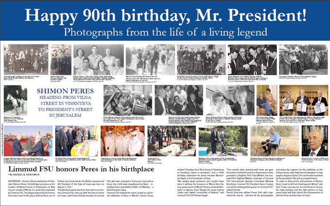 Юбилейные торжества только начались, и внести свой вклад в их проведение спешат многочисленные израильские и еврейские общественные организации. В частности, международная еврейская организация Limmud, чья деятельность направлена на развитие еврейского образования во всем мире, подготовила красочный информационный буклет, посвященный 90-летию израильского президента. Буклет содержит фотографии, иллюстрирующие различные сферы деятельности израильского президента на протяжении всей его политической и общественной карьеры.