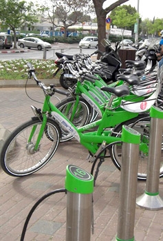 Тель-Авивский муниципалитет решил перенять опыт европейских городов, где система проката общественных велосипедов уже доказала свое право на существование. Ровно год назад жители и гости этого города получили возможность приобрести абонемент на использование зеленых велосипедов. Удовольствие пользоваться городскими велосипедами в течение целого года без ограничения обходится тельавивцам всего в 240 шекелей (менее 65 $), а гостям – в 280 шекелей (около 75 $).