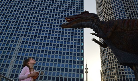В нынешнем же году динозавры вновь прибыли в наши края, только на этот раз они оккупировали крышу торгово-развлекательного комплекса «Азриэли» в центре Тель-Авива. Три десятка ископаемых ящеров в натуральную величину двигаются и издают пугающие звуки. Впрочем, их никто не боится: израильские дети с младенчества обожают динозавров и наперегонки спешат поздороваться с гигантами и даже погладить их шершавую плоть. Древние чудовища, исчезнувшие с лица планеты Земля более 65 миллионов лет назад, обрели вторую жизнь … благодаря ученым, сумевшим в деталях воссоздать ящеров Юрского периода и перенести их в наше время.