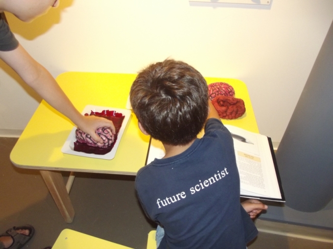 Экспозиция «Пошевели мозгами»- единственная в нашей стране выставка, где можно зайти в носовые пазухи и понять, почему мы чувствуем запах цветов. После того как маленькие гости научатся разбираться с человеческим мозгом, им предложат сыграть в увлекательную игру с моделями головного мозга животных — черепахи, рыбы, курицы, овцы, коровы и летучей мыши.