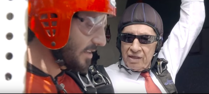Пару лет назад, вскоре после завершения президентской каденции, Шимон Перес снялся в социальном ролике, который в шутливой форме рассказывает о … поисках работы бывшего президента. С парашютом, конечно, 90-летний Шимон Перес не прыгал, это сделал за него дублер, но во всем остальном он принимал личное и непосредственное участие. В том числе разносил пиццу и пробовал свои силы в жанре стенд-ап.