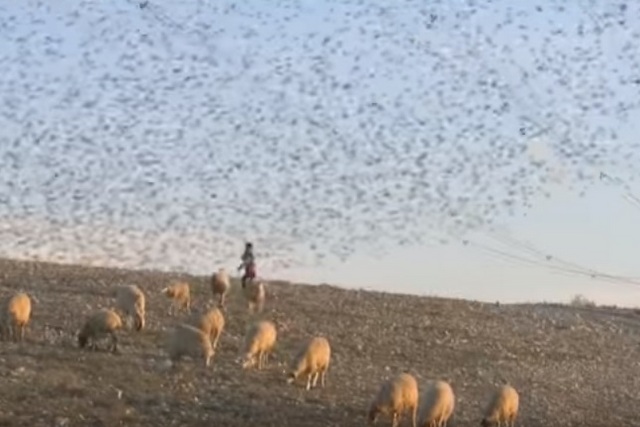 В зимнем небе над Израилем, если повезет, можно наблюдать очень интересное природное явление, когда огромные стаи скворцов устраивают нечто вроде танцевального шоу или фигур высшего пилотажа.