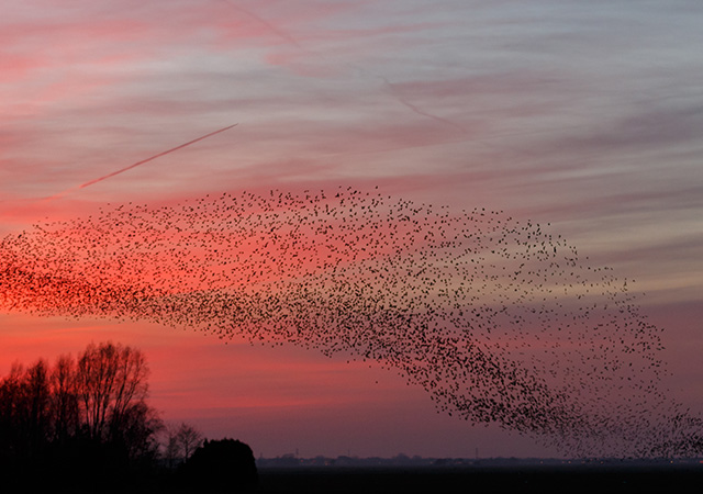 Это явление, получившее название «мурмурация» (murmuration), до сих пор не разгадано современной наукой, хотя существует несколько версий, из которых самая распространенная гласит, что таким образом стаи скворцов находят себе корм и защищаются от хищников.