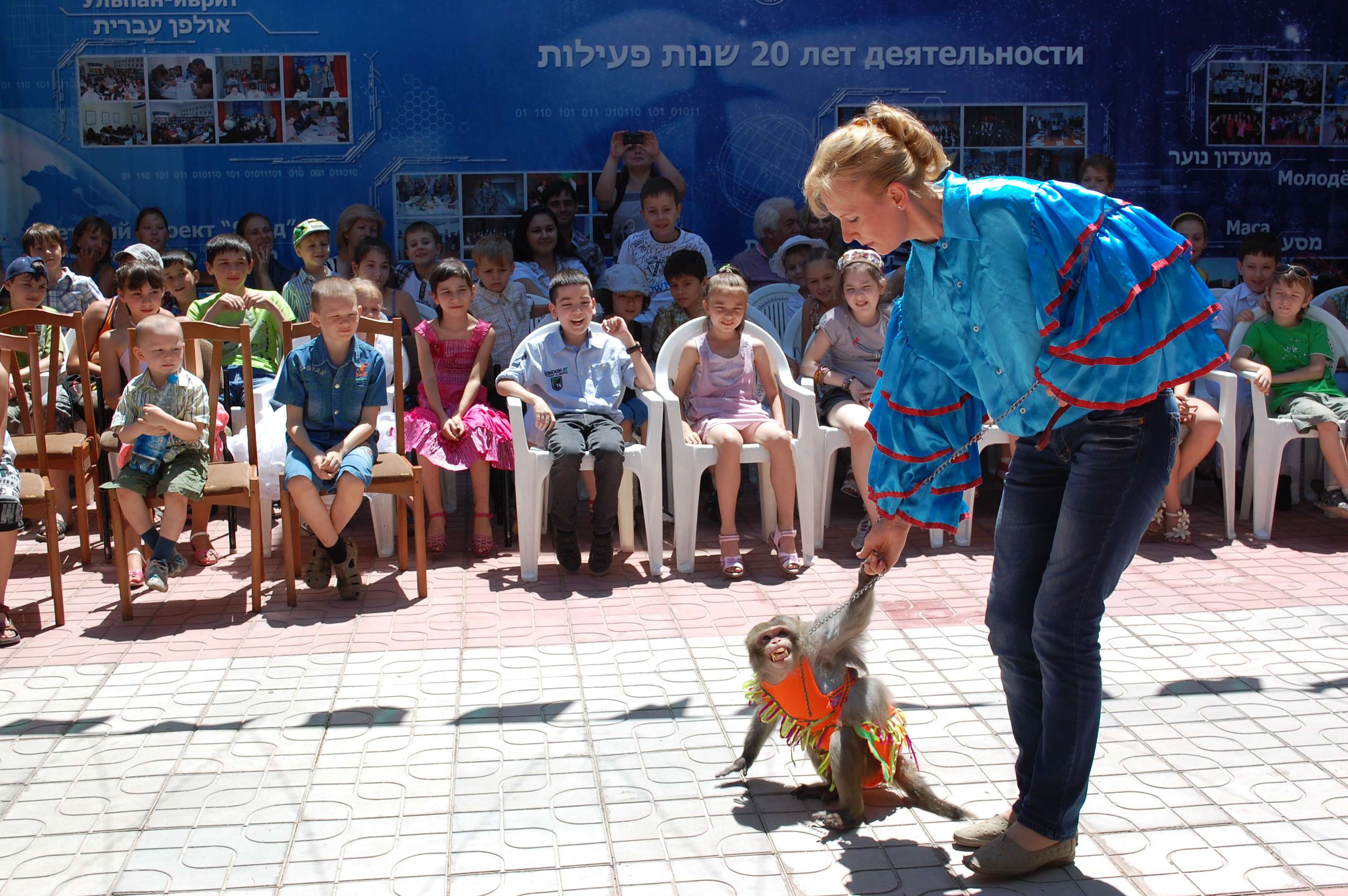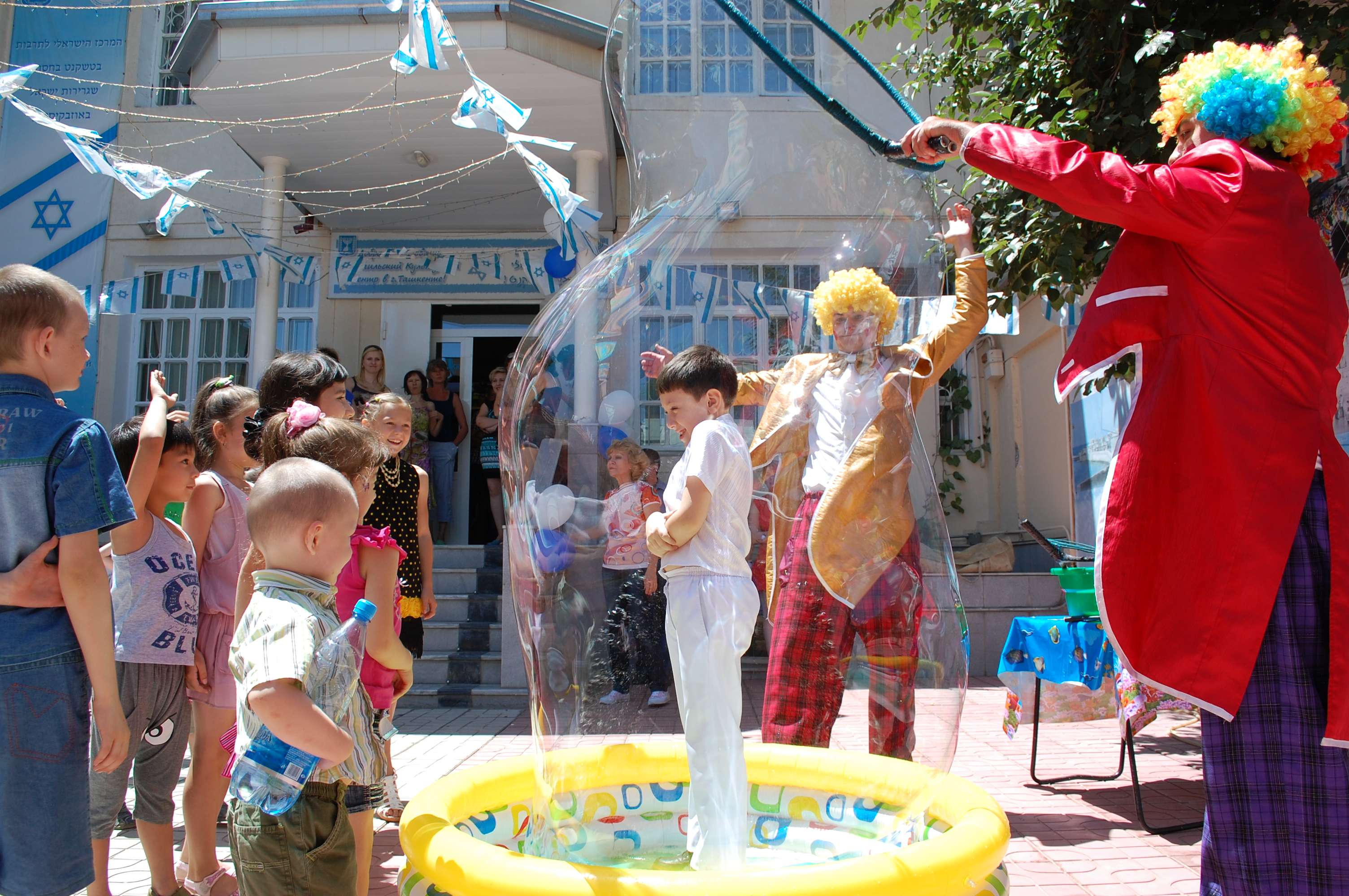 С самого утра во дворе ИКЦ собрались ханихи — участники проекта «Яхад» со своими родителями. Церемонию открыли Директор Израильского Культурного центра Илона Перельман, преподаватели и мадрихи ИКЦ, которые сказали благодарственные и напутственные слова своим воспитанникам. Всех гостей ждал сюрприз: обезьянка по имени Тамагочи, которая показала множество различных трюков, вызвав тем самым бурю положительных эмоций. Также всех посетителей ждало потрясающее шоу мыльных пузырей, подарившее одинаковое ощущение восторга и детям, и взрослым. Ну и конечно, туннель из мыльного пузыря, в котором смогли побывать все от мала до велика. Затем дети с родителями смогли заработать «деньги — центрошекели» на станциях «Ган Исраэль», подготовленных преподавателями и мадрихами ИКЦ. На заработанные деньги ханихи приобрели много подарков, сладкую вату, а также смогли нарисовать на своих лицах смешные мордочки.